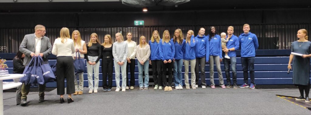 Tilaisuudessa juhlistimme myös kuluneen vuoden nuoria arvokisamitalisteja, jotka saavuttivat MM- ja EM-mitaleja koripallossa, suunnistuksessa, purjehduksessa ja lippupallossa.