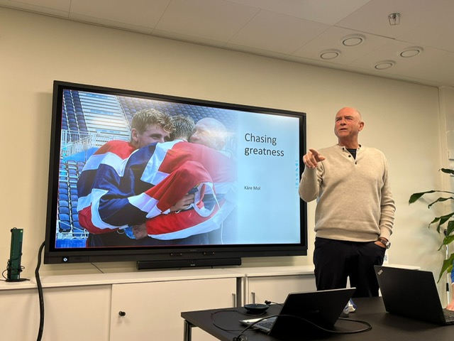 Kåre Mol luennoimassa valmentajille ja urheilijoille