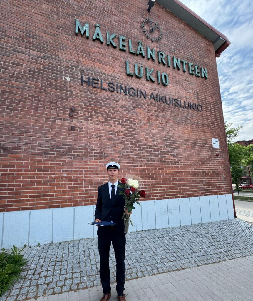 05.08.2024 Vuonna 2020 jalkapalloilija Luka Hyryläinen teki päätöksen muuttaa Saksaan ja lähti kokeilemaan ulkomaalaista jalkapalloakatemiatoimintaa. Nyt keväällä 2024 hän valmistui ylioppilaaksi Mäkelänrinteen lukiosta suorittamalla lukio-opintonsa etänä. Kuva: TSG Hoffenheim Vuosi 2019 oli ensimmäinen maajoukkuevuosi 2004-syntyneille eli Lukan ikäluokalle. Hänellä oli allaan 8 ikäluokkansa maaottelua, kun lokakuussa 2019 tuli yhteydenottoja jo ulkomailta. Vuonna 2020 Bundesliigaseura Eintracht Frankfurt otti yhteyttä ja ilmoittivat, että haluavat Lukan toimintaansa mukaan. ”Asiaa mietittiin hetki ja seura vaikutti hyvältä ja yhteisölliseltä. Päätöstä helpotti myös se, että Frankfurtiin on ainoastaan kahden tunnin lento Helsingistä. Agenttini ja perheeni kanssa pohdimme ja päädyimme lopulta siihen, että lähetään kokeilemaan ulkomaista akatemiatoimintaa”, Luka taustoittaa valintaansa. ”Kyllähän muutto jännitti ja muutamaa päivää ennen lähtöä myös ahdisti hiukan, sillä perheen ja ystävien jättäminen tuntui pahalta. Vielä ensimmäiset illat Saksassakin mietitytti, mutta kun arki Frankfurtissa lähti sujumaan niin jännitys helpotti.” Arki saksalaisessa akatemiassa mennään jalkapallon ehdoilla, mutta samalla Luka on pystynyt edistämään lukio-opintojaan, josta palkkio tuli vuoden 2024 keväällä ylioppilaslakin muodossa. Luka kertoo tyypillisen arkensa näyttävän tältä: ”Aamu alkaa aamupalalla, jonka jälkeen saattoi olla hetki aikaa tehdä kouluhommia. Sen jälkeen suuntasin harjoituksiin, jonka jälkeen söimme lounaan yhdessä joukkueen kanssa. Tiistaisin meillä oli harjoitukset kahdesti päivässä. Loppupäivä käytettiin palautumiseen, ruokailuun sekä opintojen edistämiseen. Sunnuntait oli vapaapäiviä, jolloin sain eniten tehtyä lukio-opintojani.” Kuva: Eintracht Frankfurt Vuonna 2022 ympäristö vaihtui, kun Luka siirtyi TSG Hoffenheimiin. Hänellä oli pari hyvää kautta alla Frankfurtin juniorijoukkueessa ja oli päässyt harjoittelemaan myös miesten joukkueen mukana. Siinä vaiheessa kiinnostusta ja yhteydenottoja tuli muistakin seuroista. Hoffenheimin kanssa keskustelut etenivät hyvin ja seuran toiminta vakuutti Lukan. Ensimmäinen kausi ei kuitenkaan sujunut toivotusti, kun loukkaantuminen piti hänet poissa pelikentiltä koko kauden. Säärestä löytyi rasitusmurtuma, eikä hän päässyt harjoittelemaan joukkueen mukana. Toisella kaudella Luka oli jälleen pelikunnossa ja pelasi Hoffenheimin U23-joukkueessa ja pääsi harjoittelemaan ajoittain myös miesten joukkueen mukana. Ulkomaalaisena pelaajana yhdessä Euroopan suurimman jalkapallomaan akatemiatoiminnassa saattaa kohdata niin sisäisiä kun ulkoisiakin odotuksia ja paineita. ”Aina pieni paine on suoriutua, mutta kukaan ei tullut sitä minulle sanomaan vaan se lähti itsestä. Koen, että omalla kohdalla pieni jännitys ennen pelejä on ihan hyväksikin. Ulkopuolisia odotuksia saattaa olla jonkun verran, mutta ei yhtään liikaa. Menestyneillä seuroilla on tietenkin paineita siitä, että seuran pitää menestyä ja voittaa pelejä. Sain myös kotijoukoilta aina paljon tukea. He muistuttivat minua siitä, että yritän aina oman parhaani.” Lukio-opintoja etänä – Oma motivaatio sekä läheisten tuki isossa osassa Lukioikäisenä muuttaminen ulkomaille vaati myös erikoisjärjestelyjä koulun suorittamisen osalta. Mäkelänrinteen lukiossa opintojen suorittaminen sujui kuitenkin joustavasti myös etänä. Google Classroomia käytettiin tehtävien tekemiseen ja Zoomia sekä Teamsia hyödynnettiin kokeiden suorittamiseen. Luka kertoo olleensa paljon yhteydessä opettajiin, jotka olivat erittäin joustavia ja etenkin opinto-ohjaaja Tarja Luhtalampeen, joka auttoi häntä opintojen suunniteluissa. Ylioppilaskirjoitukset suoritettiin kuitenkin Helsingissä paikan päällä. Ensimmäiset kirjoitukset maaliskuussa 2023 sujuivat ongelmitta, sillä loukkaantumisen takia oli helpompi olla joukkueen toiminnasta hetki pois ja matkustaa Suomeen. Syyskuussa 2023 Luka osallistui myös sovitusti syksyn ylioppilaskirjoituksiin, ja joutui olemaan 10 päivää poissa harjoituksista. Hän muistaa saaneensa siitä hieman palautetta joukkueen puolesta. Lukan kaksoisurapolku on tähän asti ollut siis poikkeuksellinen ja vaatinut paljon häneltä itseltään kuin läheisiltä ja koululta. ”Kyllä se on vaatinut paljon itsekuria suorittaa tehtäviä itsenäisesti sekä myös motivaatiota suorittaa lukio-opinnot loppuun asti. Kun päätin lähteä Saksaan, teimme vanhempieni kanssa sopimuksen, että muutosta huolimatta suoritan lukion loppuun neljässä vuodessa. Läheisten tuki onkin ollut merkittävää ja äiti on ollut isona apuna koulutehtävieni kanssa. Sunnuntaisin opiskelin paljon ja äiti auttoi minua joko paikan päällä Saksassa tai Facetime-puhelun välityksellä.” Luka valmistui Mäkelänrinteen lukiosta toukokuussa 2024. Luka valmistui Mäkelänrinteen lukiosta toukokuussa 2024 ja pääsi ylioppilasjuhlaan paikan päälle Helsinkiin vastaanottamaan lakkinsa. Kotona pidettiin sen jälkeen kivat juhlat perheen ja kavereiden kanssa. Kun Lukalta kysytään tulevaisuuden suunnitelmista, hän kertoi nauttivansa alkukesän Suomessa läheistensä kanssa sekä myös U21-maajoukkueen mukana leireillessä. Juhannuksen jälkeen hän palasi Saksaan ennen kauden alkua. Ensimmäisen puoli vuotta hän pitää taukoa opiskeluista, mutta haluaa tulevaisuudessa kouluttautua jalkapallouransa ohella. Edellinen artikkeli Seuraava artikkeli